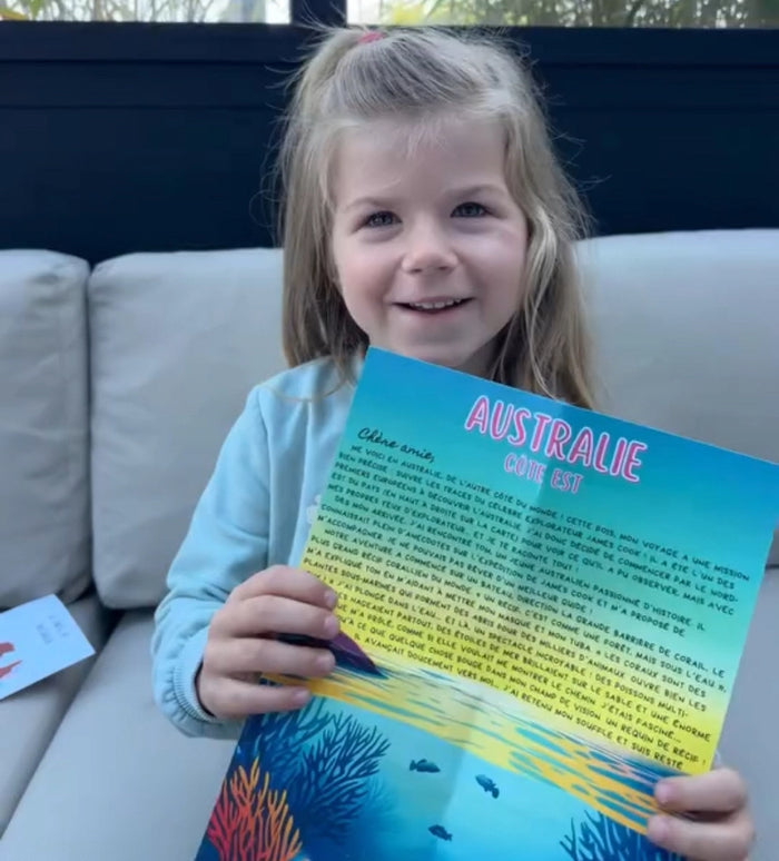 Ma fille adore vos lettres. Elle est passionnée par les explorations : vos courriers lui permettent de voyager, c’est vraiment formidable :) Merci d’avance, nous nous réjouissons de recevoir les prochaines.