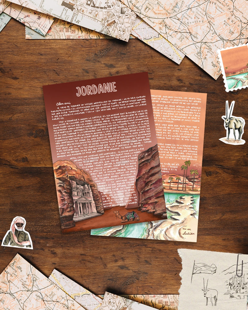 Chaque lettre est illustrée à la main avec soin. Une véritable petite œuvre d’art avec des morceaux de paysages venus du bout du monde… accompagnée d'un nouveau sticker tous les mois pour débuter une belle collection !