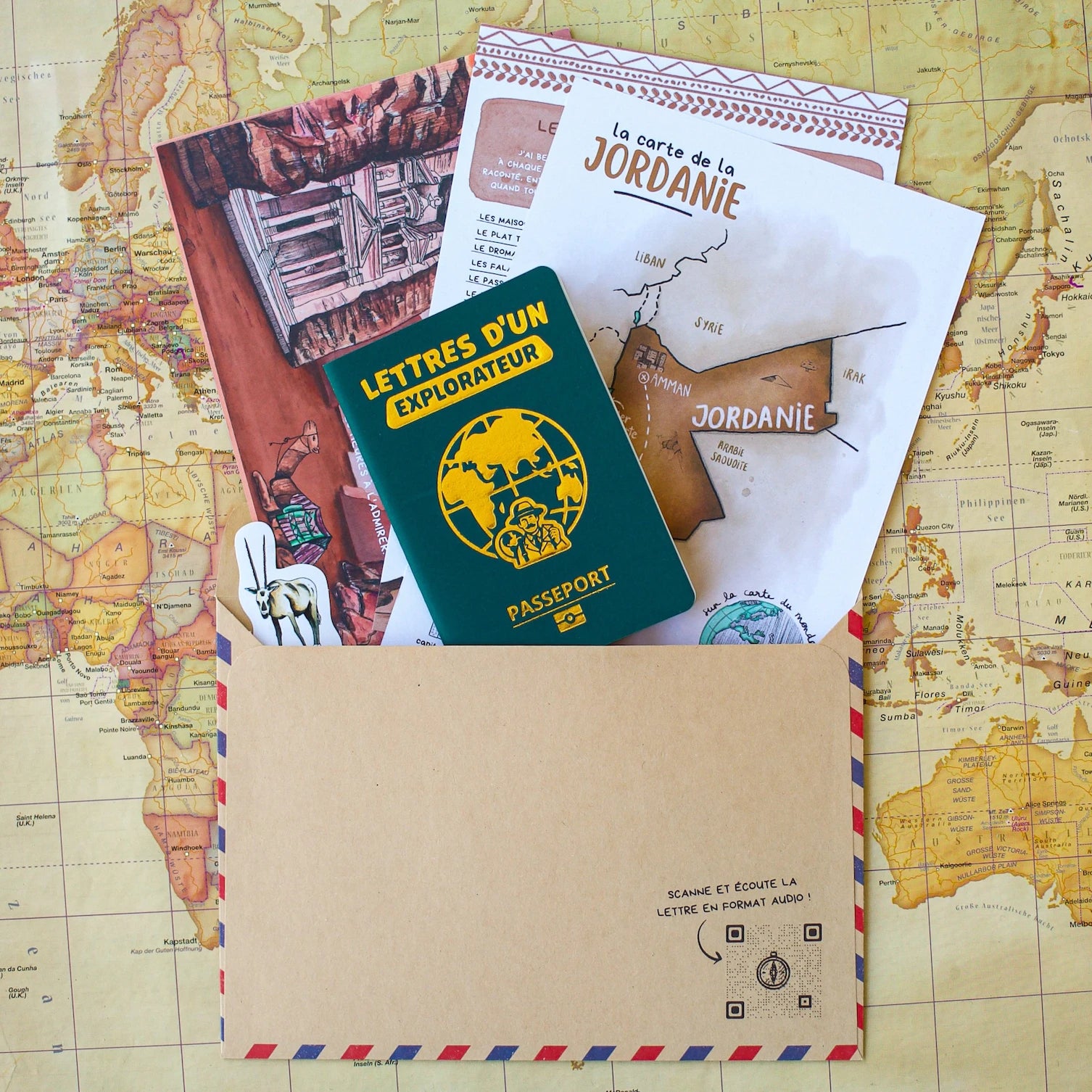 Ma fille a reçu ses deux premières lettres et son passeport. Quel bonheur ! Elle pose plein de questions, veut réécouter les lettres et n’arrête pas de me demander quand arrive la prochaine. J’ai adoré découvrir les lettres et les carnets de voyage avec elle. Je pense qu’on va faire des activités ou des repas en lien avec le pays visité, pour patienter jusqu’à la prochaine lettre.